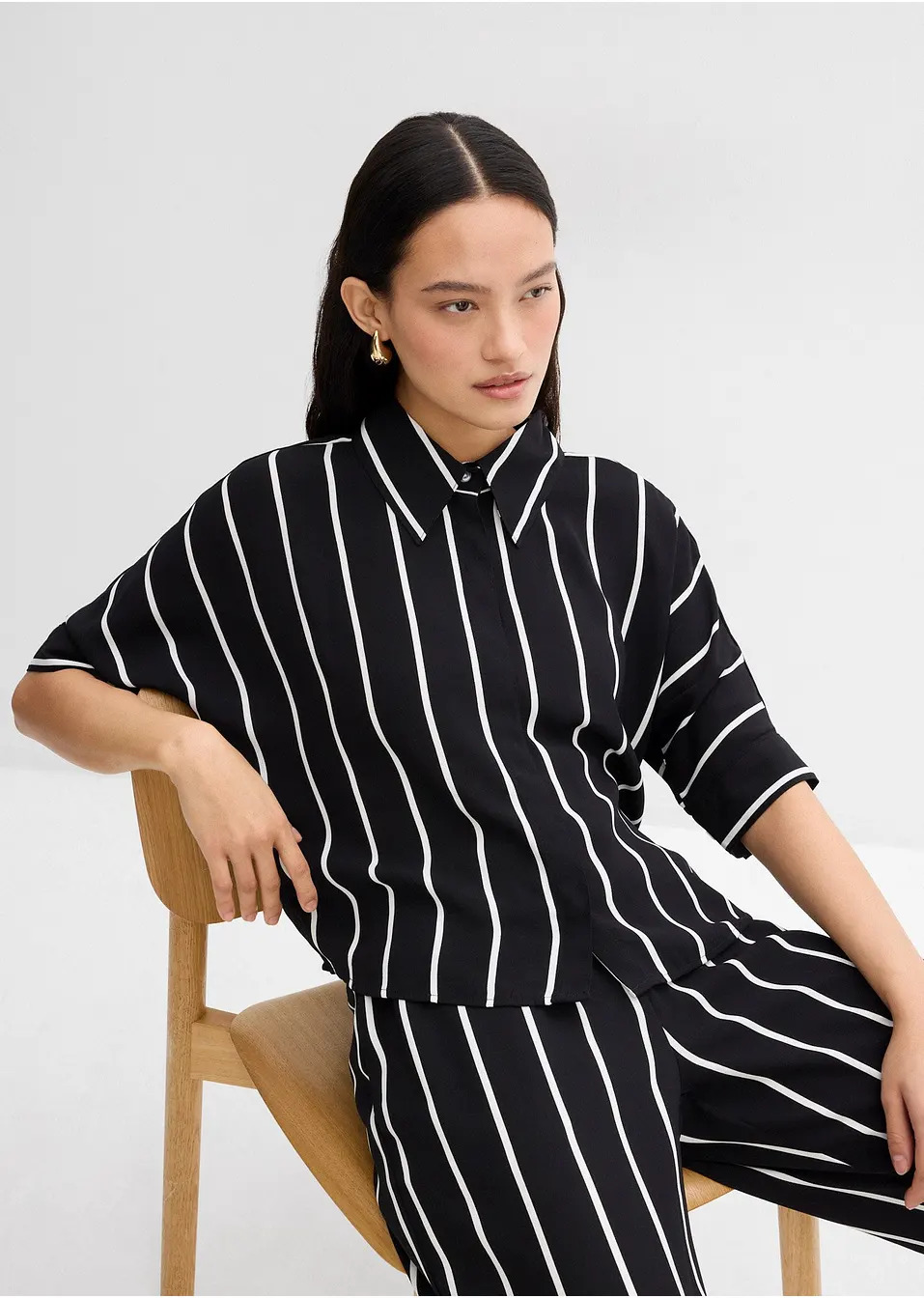 Риза с къс ръкав от структуриран креп